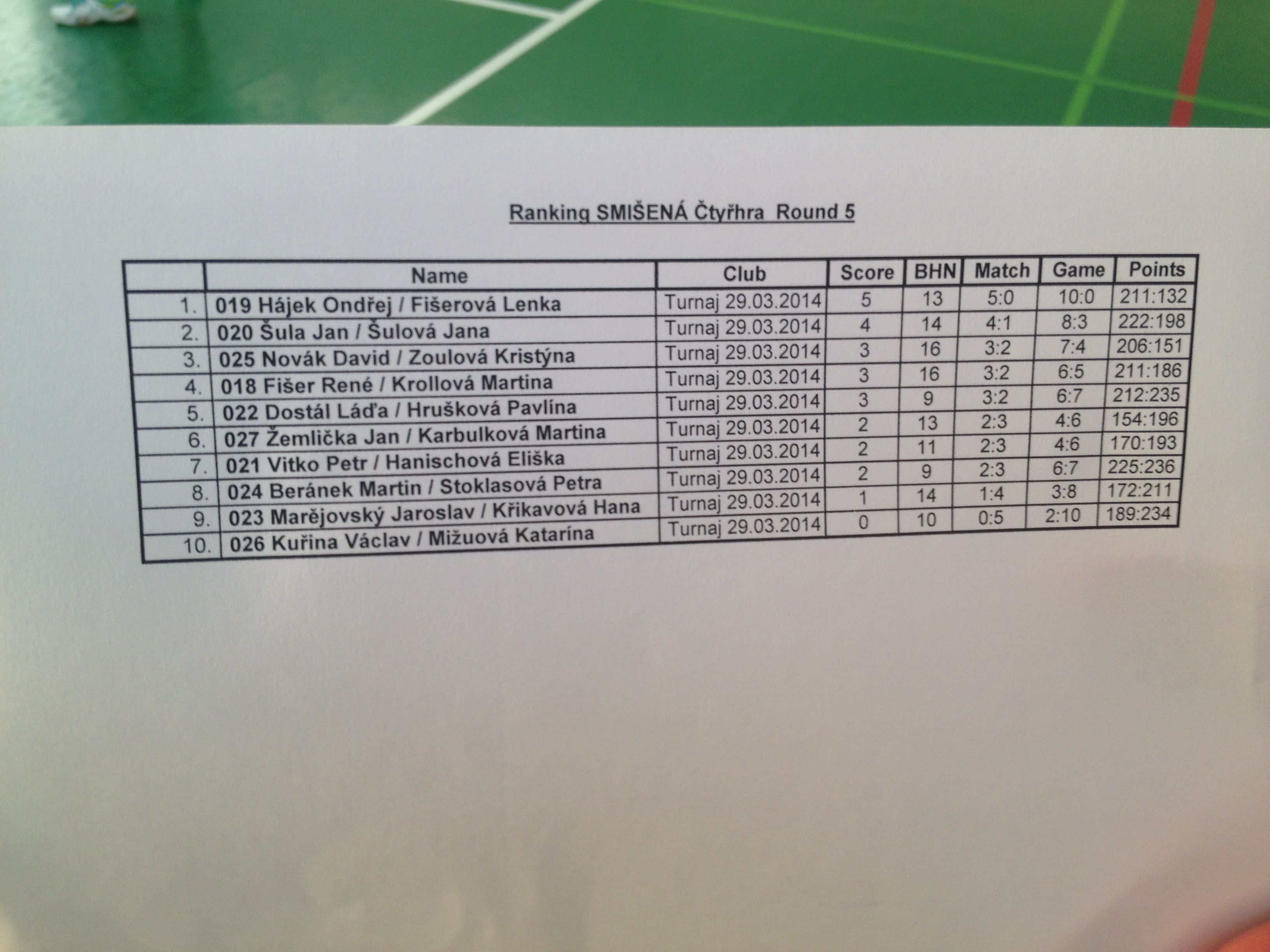Článek o turnaji, fotografie a celková tabulka později.Telegraficky k výsledkům
