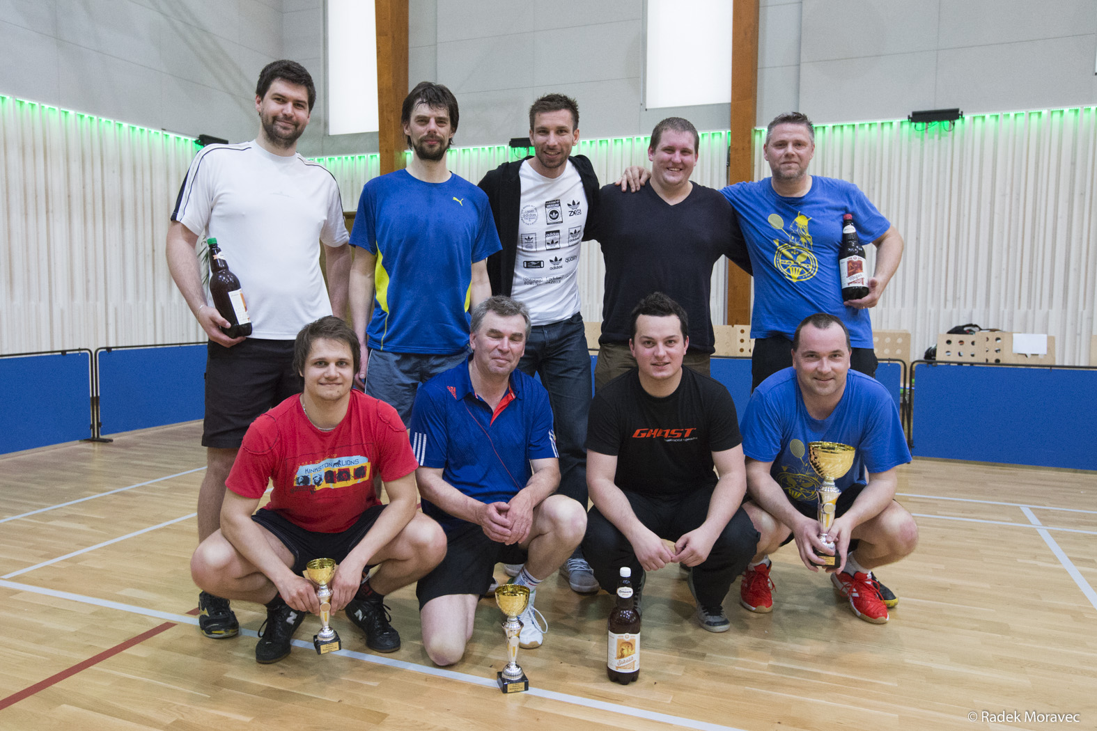 Vlevo modří Míra s Martinem, vpravo takté modří Jarda s Lajbou. Fans vytvořili elektrizující atmosféru, která gradovala s kadou dalí výměnou. Vítězství nakonec stejně patřilo modrým, a tak si Jarda s Lajbou, kromě fotky s Petrem a Jarem, odvezli i zlatý pohár a několik litrů zichoveckého moku. Stříbro zasloueně získali Míra a Martin. Bronz patřil kralupským.